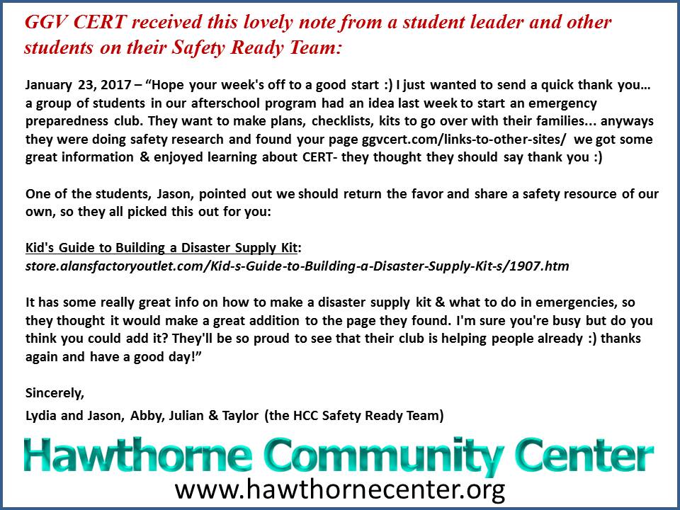 GGV CERT is a member of the Green Valley Council’s Emergency Planning Committee.